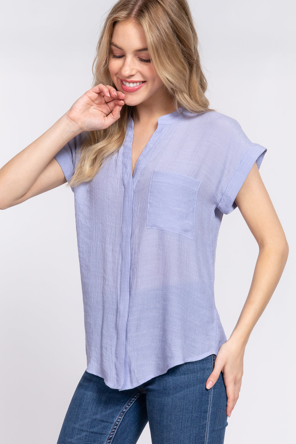 Imported S.M.L DOLMAN SLEEVE OPEN NECK WITH FRONT POCKET BUTTON DOWN WOVEN TOP 70% Rayon 30% Polyester ...