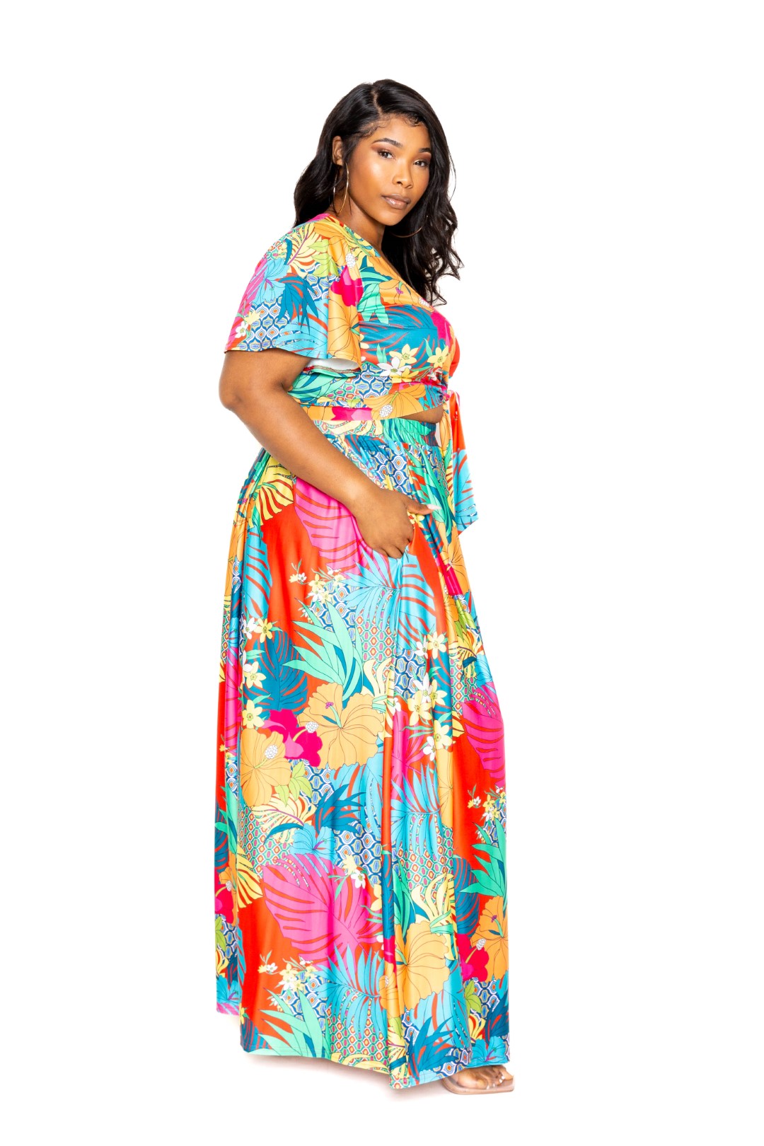Tropical floral maxi skirt & top set