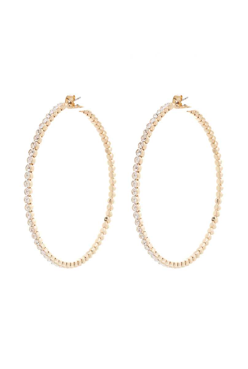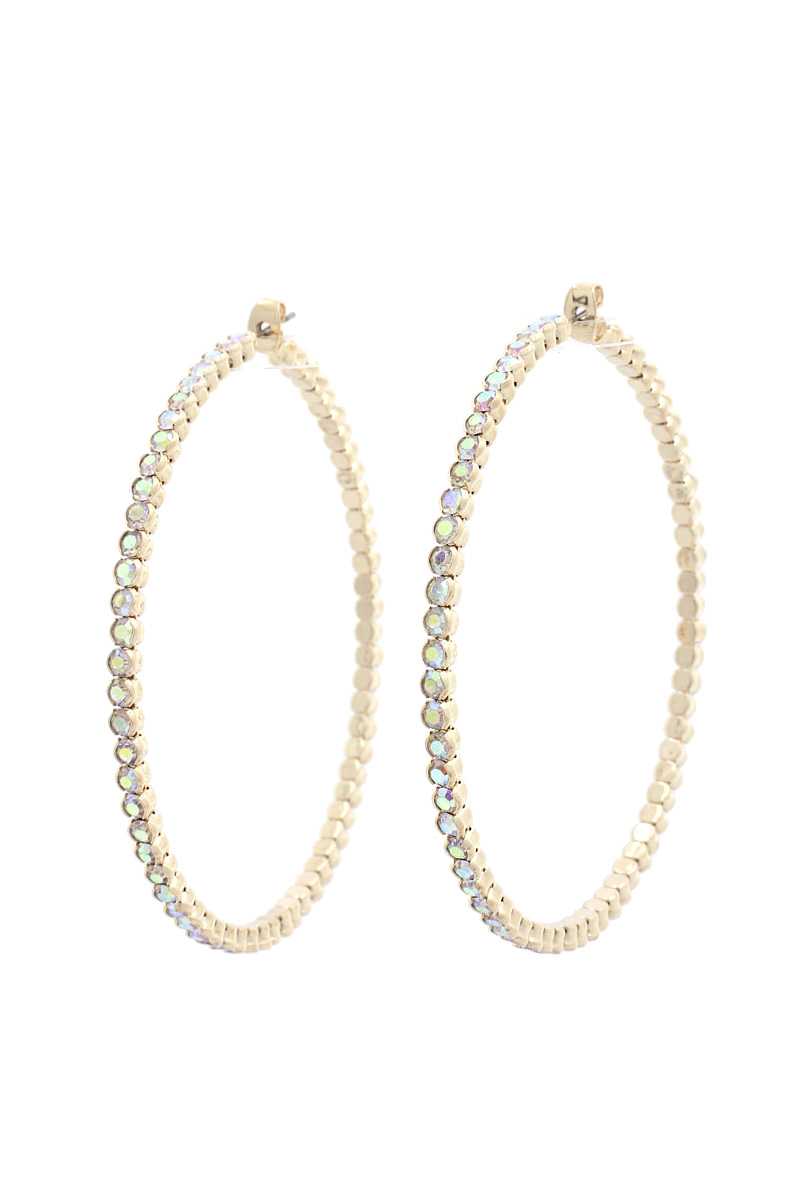 Imported CLASSIC BASIC RHINESTONE HOOP EARRING Gold/Multi.Gold.Rhodium  FBJ Classic Basic Rhinestone Hoop Earring