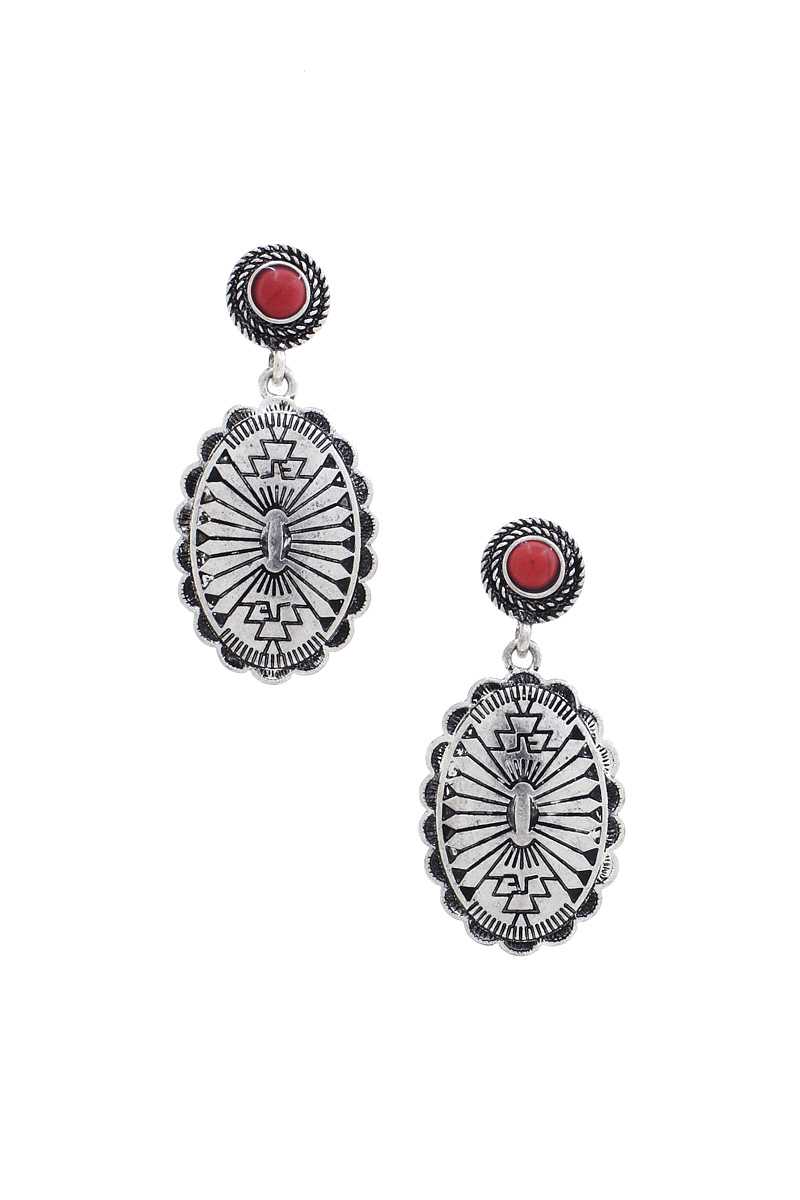 Imported WESTERN CONCHO EARRING White.Red.Turquoise  FBJ Western Concho Earring